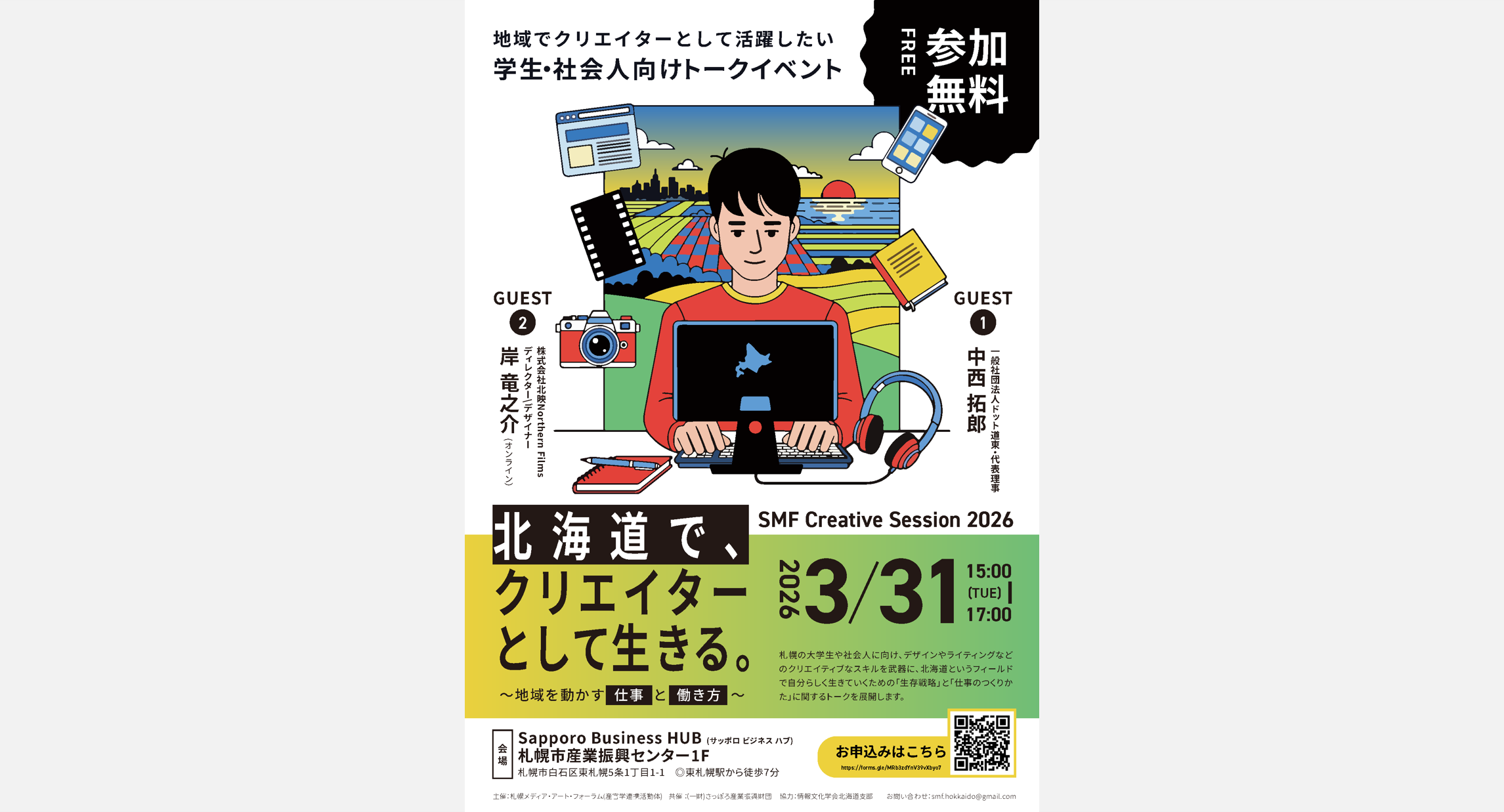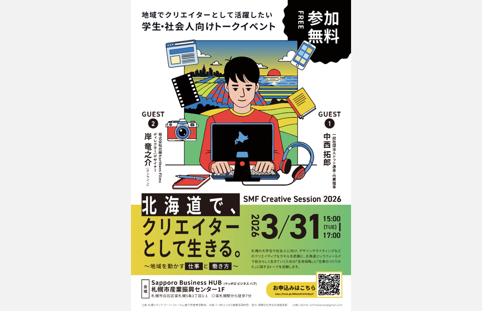 【参加者募集のお知らせ】SMF Creative Session 2026『北海道で、クリエイターとして生きる。』 2026/3/31(火)開催 参加無料 事前申し込み受付中