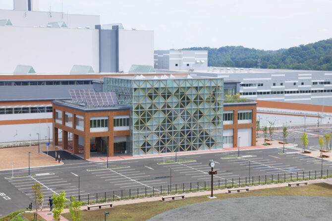 ガラスカーテンウォールのファサードが特徴で、四季折々の風景をガラス面に映し出します。 - 駐車場