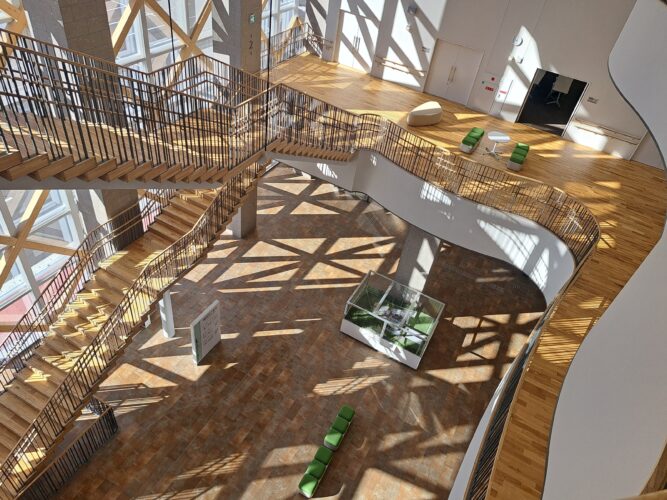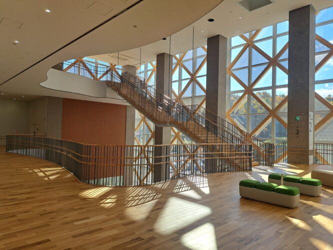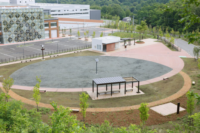 屋外には人々が気軽に訪れ交流できる広場や自然が整備されています。管理棟は3層吹き抜けの大空間ホールや