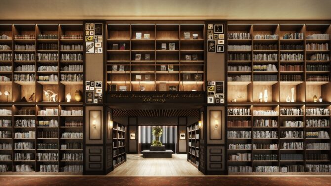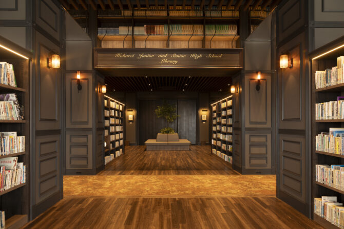 2025年に開校40周年を迎えた私立中高一貫男子校。2024年秋には創立40周年記念事業として進められた新図書館が完成。館内はハリー・ポッターの世界を思わせる重厚なデザインで、「チームラボ」(創立者・堺大輔氏=4期生)のデジタルアートをはじめ、多数の絵画やレプリカが展示されています。