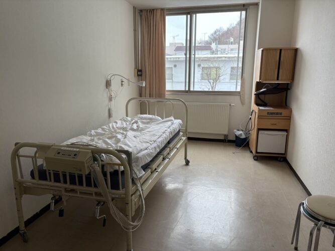 1982年に開院し、4階や一部施設を除き2024年にリニューアルされた内科・外科をはじめ、循環器や消化器・整形外科など幅広い領域に対応できる病院です。藻岩山のふもとに建つ病院のため、ナースステーションや病院の窓からは豊かな自然が見渡せます。未リニューアルで43年前に造られたままの4階フロアや一部施設は当時ホテルをイメージしてデザインされたとのことで、昭和レトロ感漂う味のあるロケーションです。