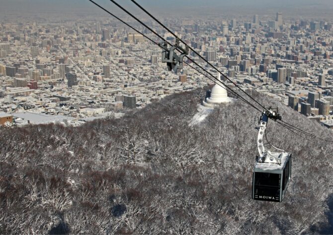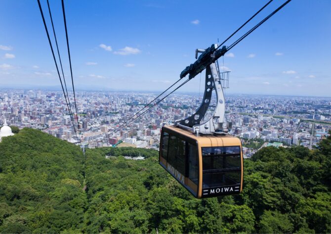 藻岩山の標高は531m。北海道自然100選に選ばれた美しい山です。国の天然記念物に指定されている原始林があり、四季折々の表情を見せてくれる。 展望台まではロープウェイとミニケーブルカーで乗りついでいくのが一般的。