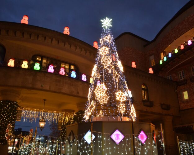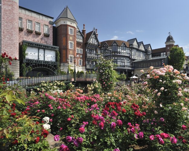 夏はバラが咲き誇り、冬はイルミネーションが煌く英国風の庭園は、撮影場所におすすめです。