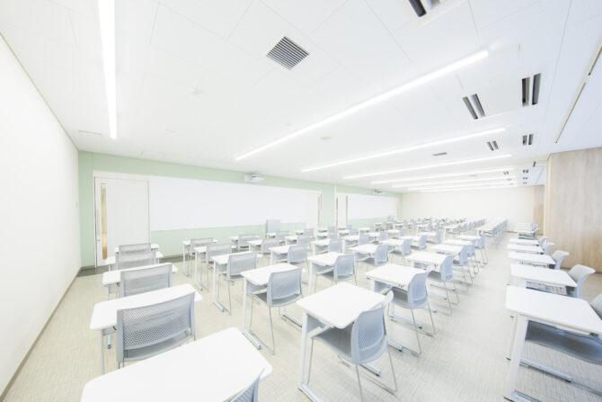札幌看護医療専門学校は、2021年4月に校舎が完成した札幌市厚別区新札幌エリアに位置する新しい学校です。臨床工学実習室や歯科ユニット実習室、視能実習室などには、最先端の医療機器を設置・看護実習室では、病院としての撮影シーンの相談も可能です。そのほか、カフェテリアや図書室・ロッカールーム・教室・廊下などの様々な撮影シーンとしての相談も可能です。